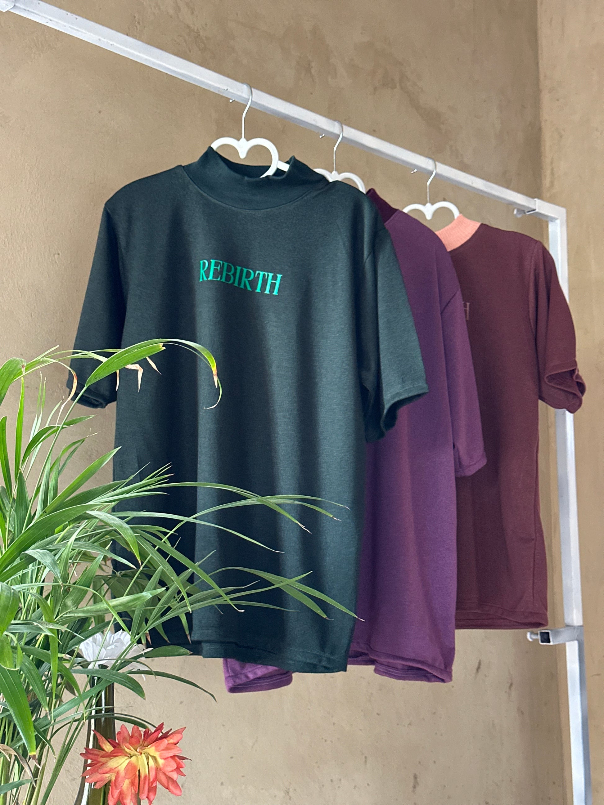 Elevate your everyday style with the Rebirth Luxe French Jersey Knit T-Shirt, crafted from premium French jersey knit fabric for an ultra-soft, breathable, and slightly structured feel. Designed for both comfort and sophistication, this t-shirt features a mock neck, relaxed fit, and bold front-and-back graphics that inspire you to Recreate Yourself. Perfect for casual outings or layered streetwear looks, the Luxe French Jersey Knit T-Shirt is available in three versatile colours, making it a timeless addition to your wardrobe.